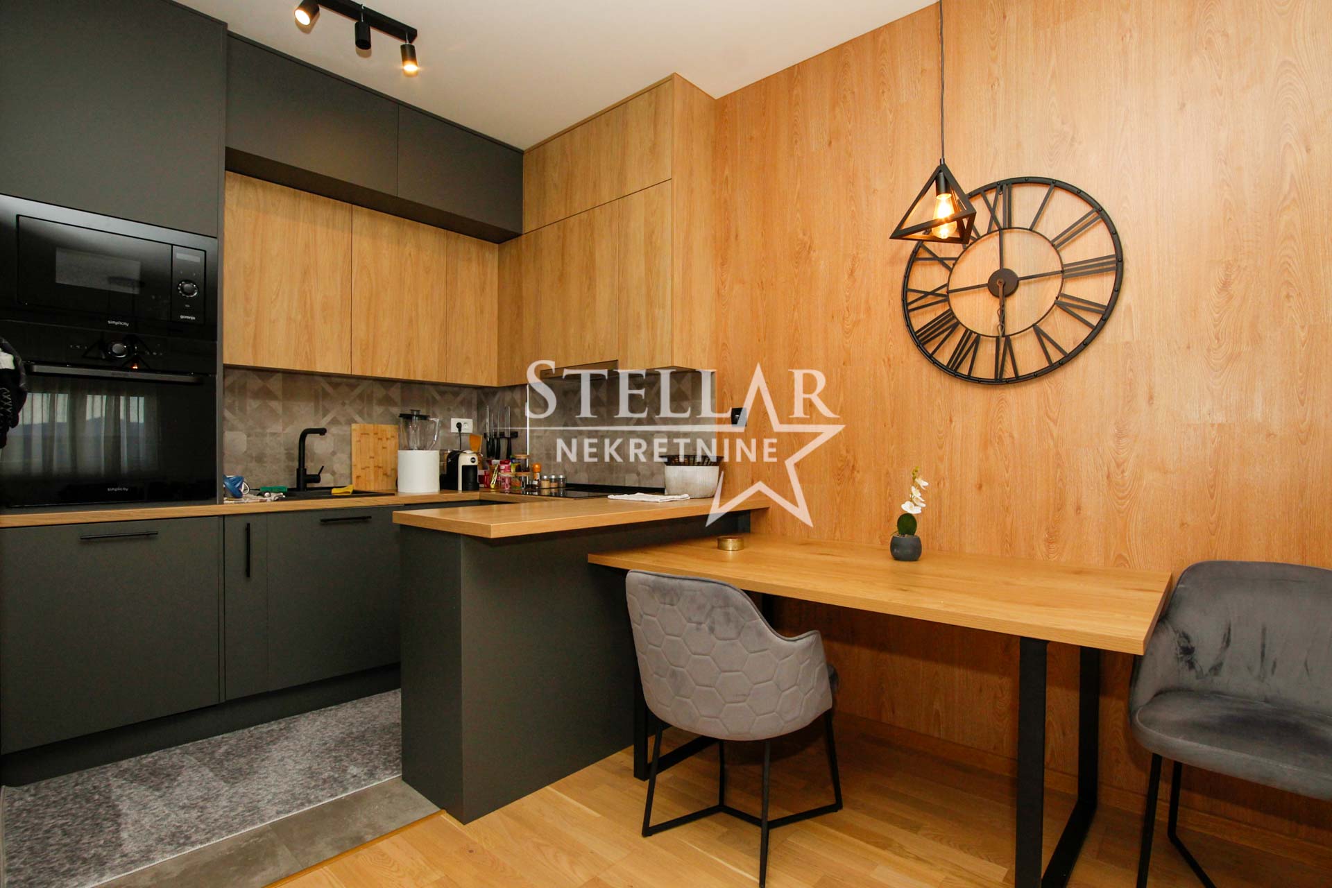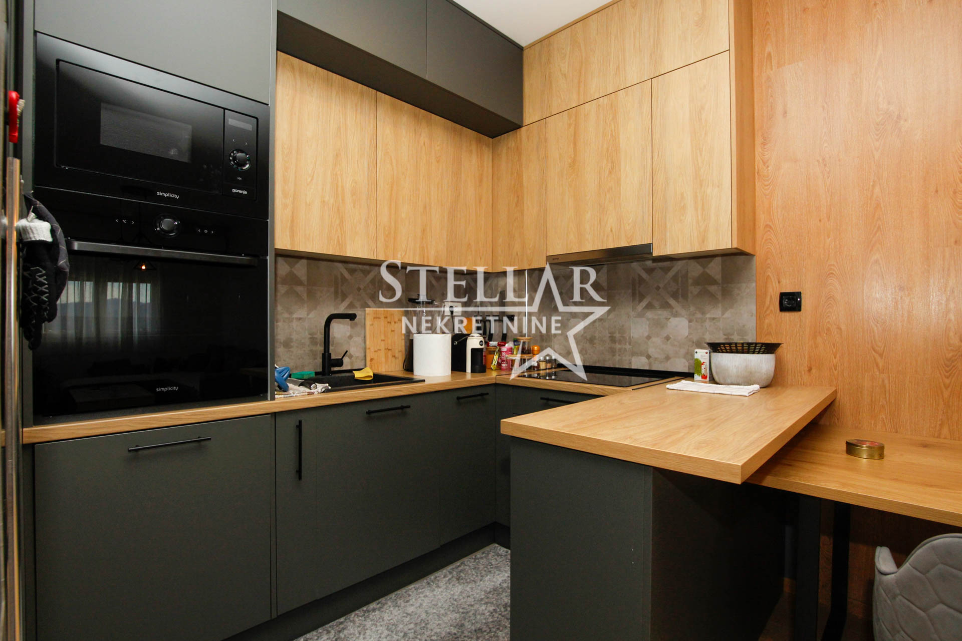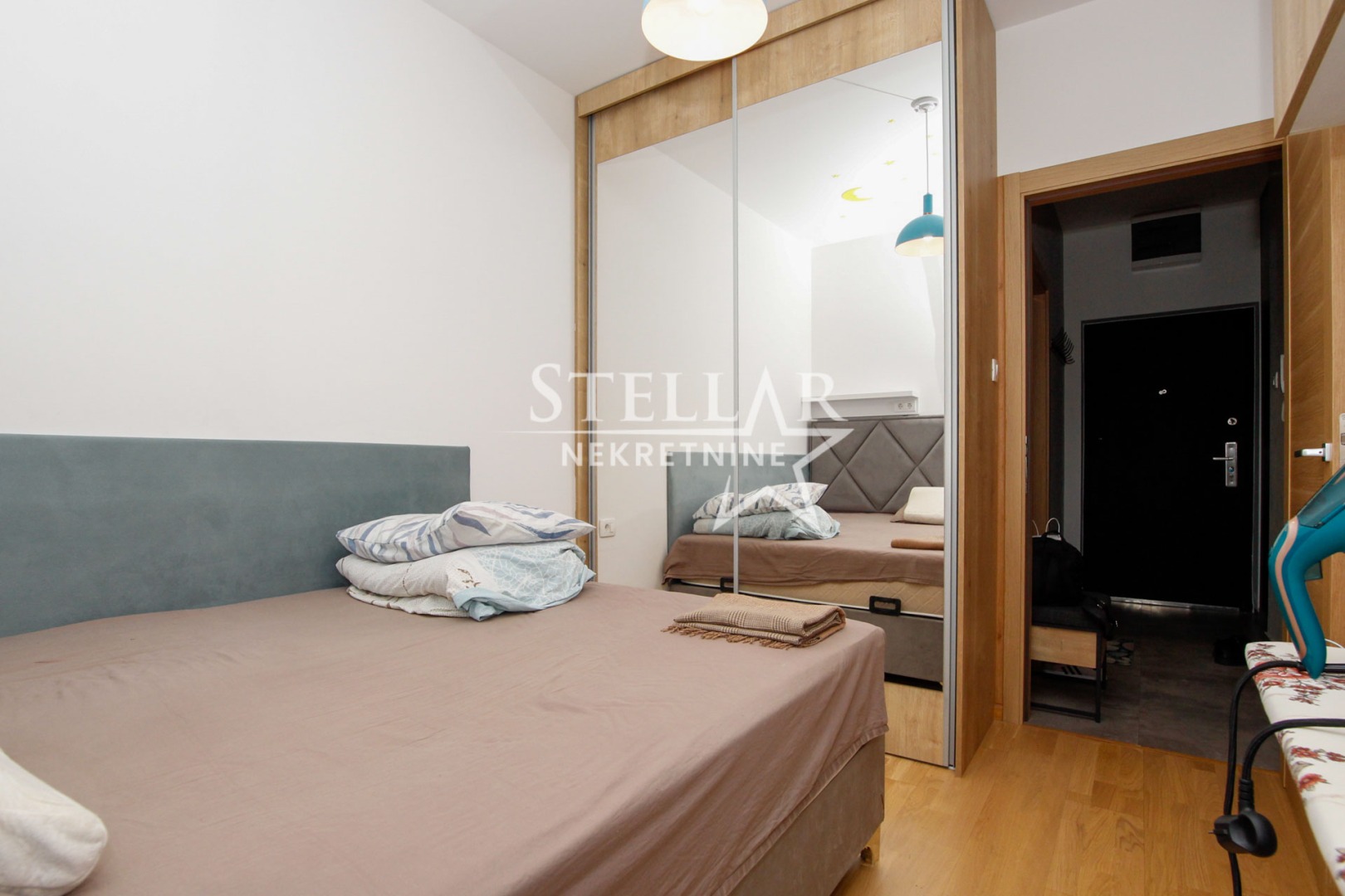 Stan je u potpunosti i veoma lijepo opremljen. Ima sve što je potrebno za svakodnevnicu. Na ulazi je manji hodnik sa ugradnim plakarom, dnevni boravak je u jedinstvu sa kuhinom i trpezarijom, a odvojena prostorija je spavaća soba sa američkim plakarom. Balkonu se može pristupiti iz sobe i dnevnog boravka.