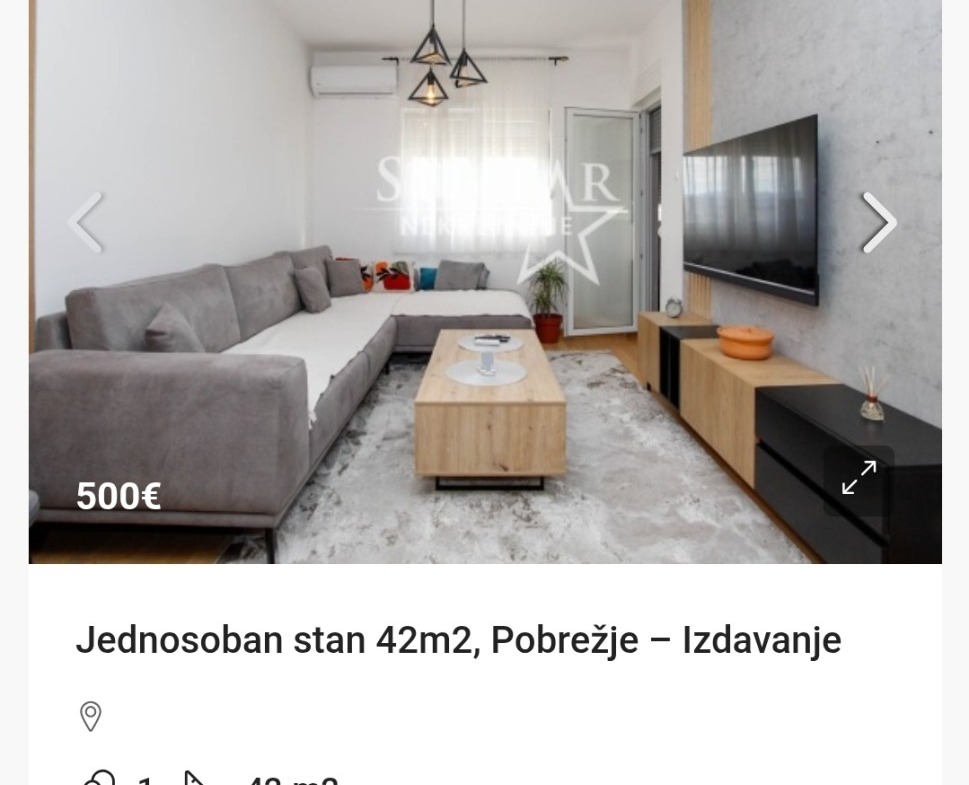 Jednosoban stan 42m2, Pobrežje – Izdavanje