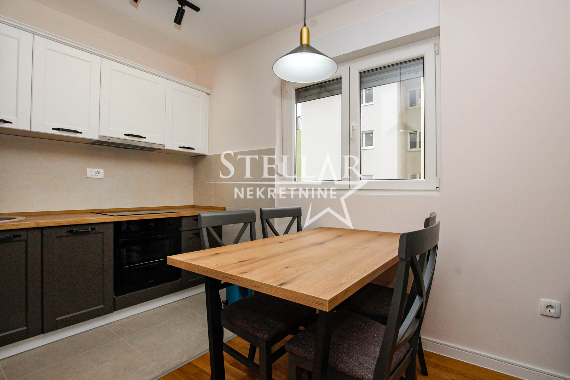 Izdaje se jednosoban stan na Tuškom putu, u potpuno novoj zgradi. Stan ima 42 m² i nalazi se na petom spratu. Južne je orijentacije, sa balkonom, što mu obezbjeđuje dosta prirodne svjetlosti.