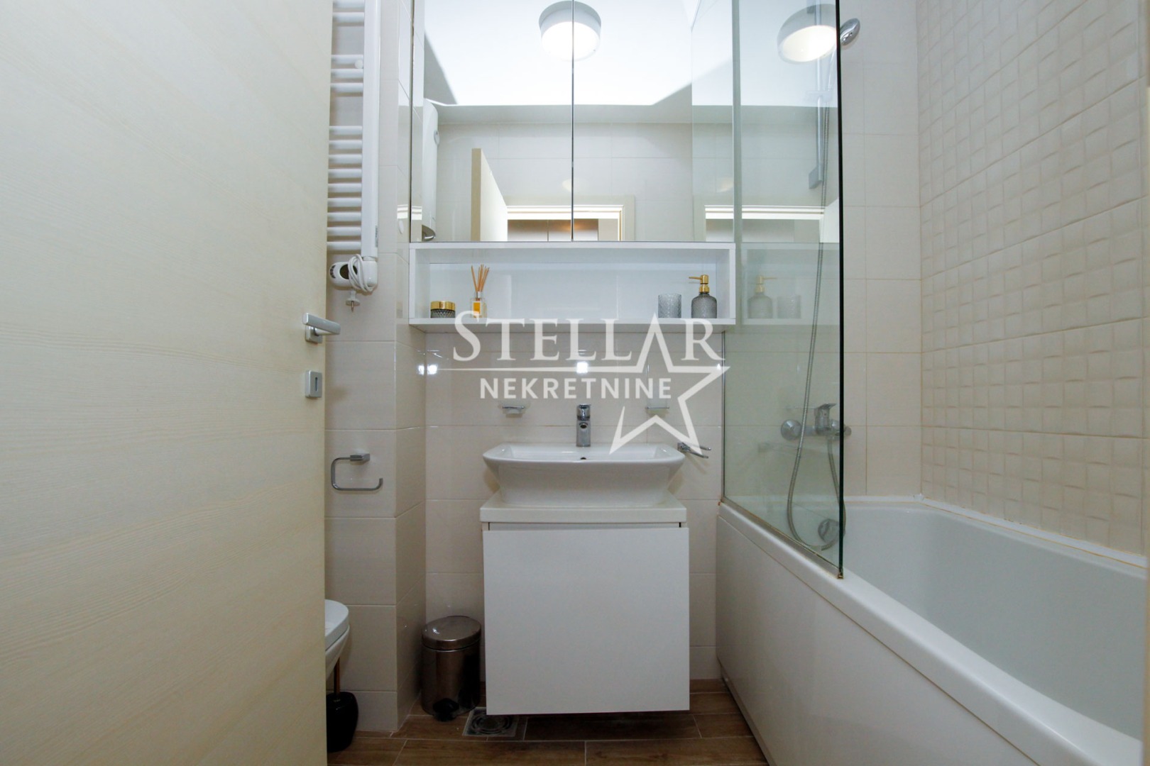 Stan se nalazi na dvanaestom spratu i odlikuje se modernim, luksuznijim enterijerom koji pruža visok nivo komfora. Površina stana iznosi 43 m².