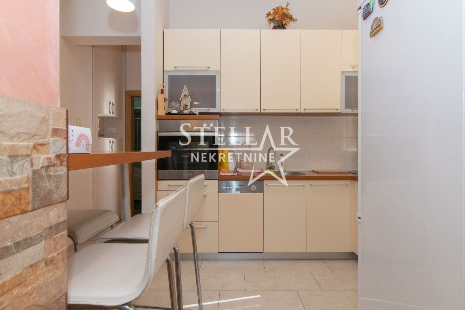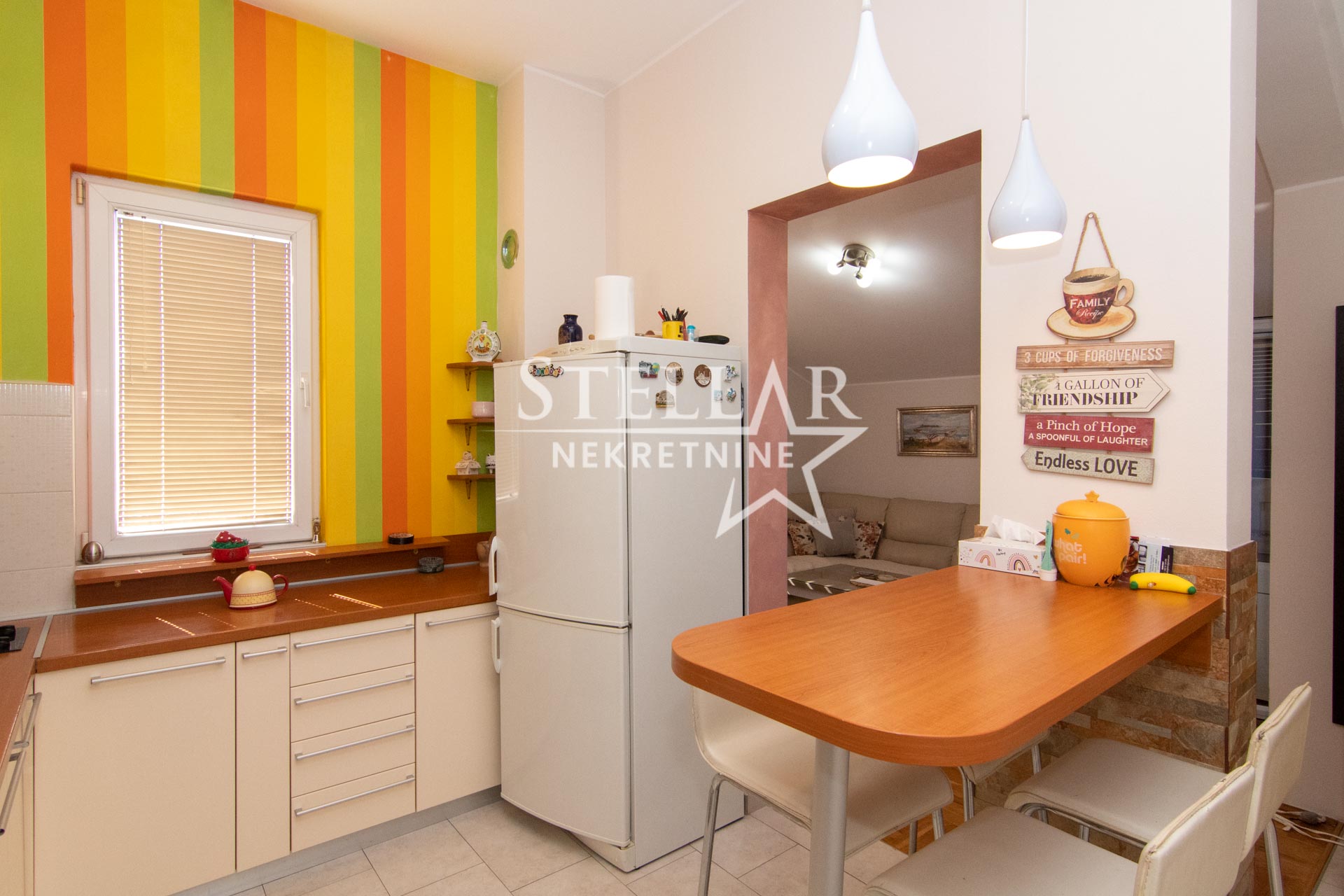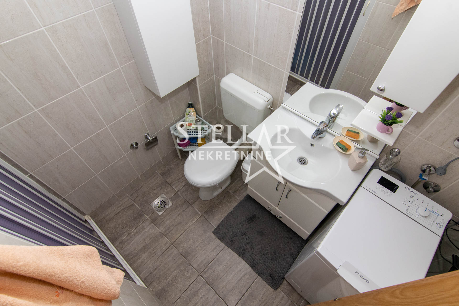 Nalazi se na drugom spratu u zgradi bez lifta. Stan je potpuno opremljen, balkon je zapadne orijentacije, a ispred zgrade ima dovoljno parking mjesta. Stan je klimatizovan.