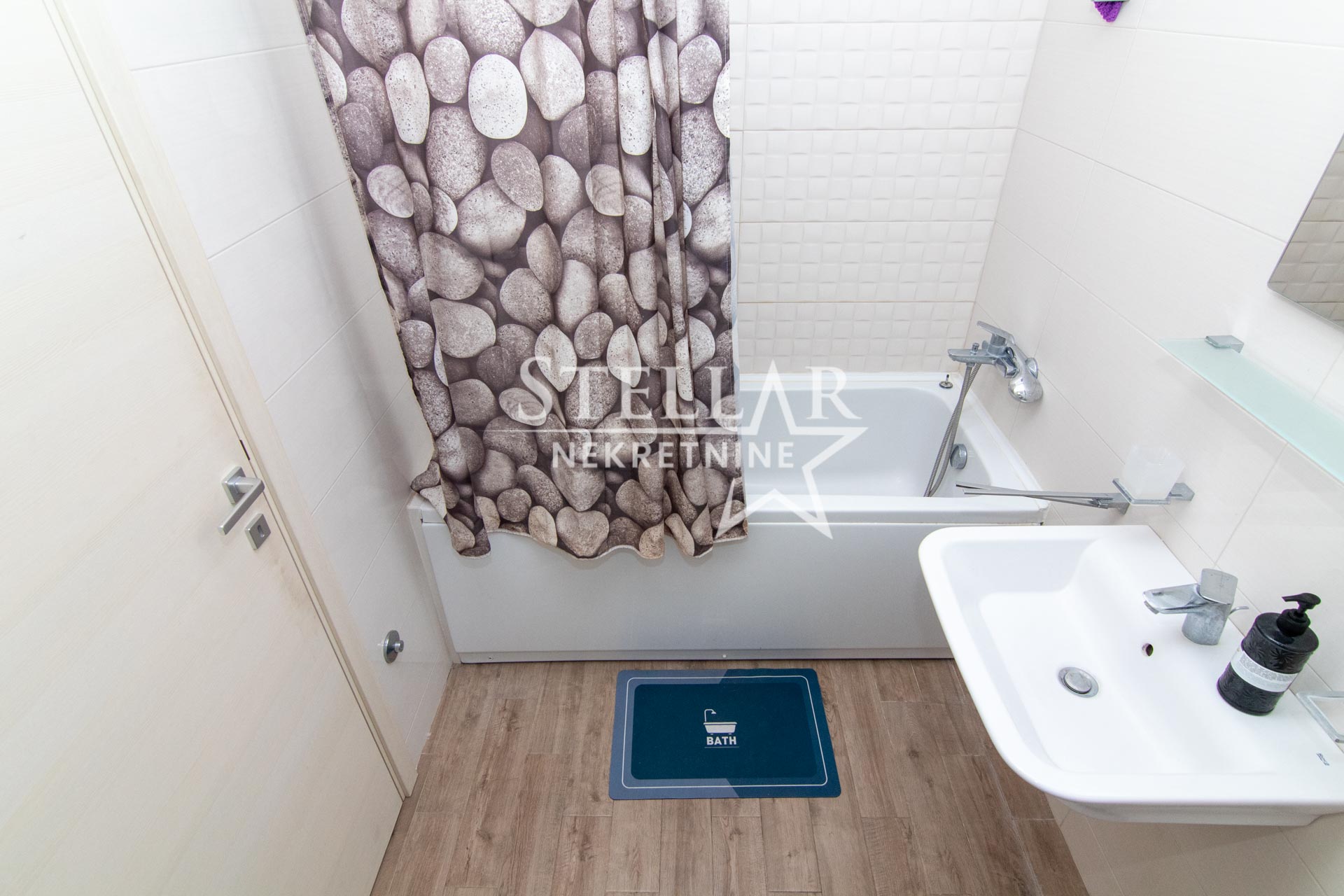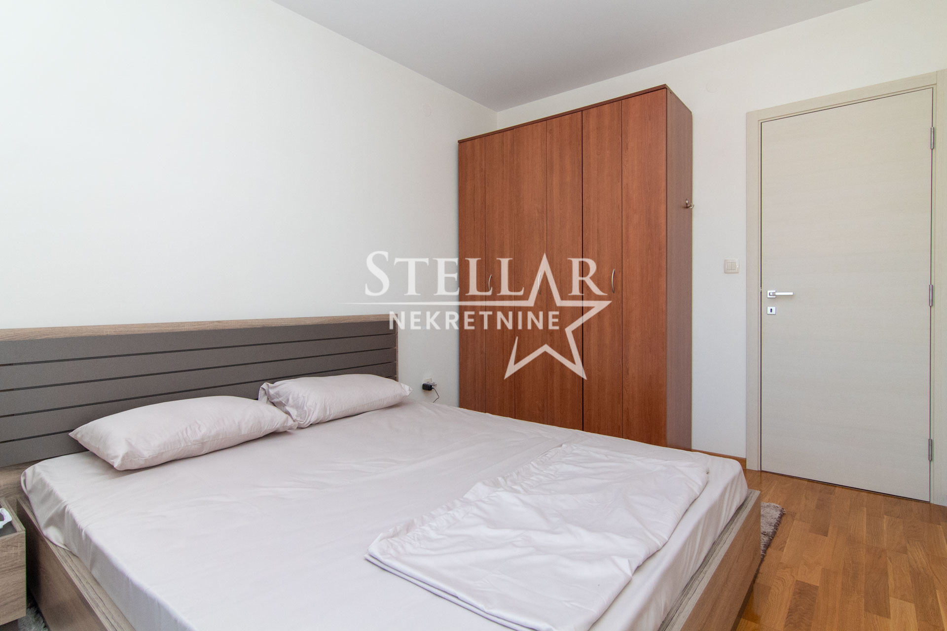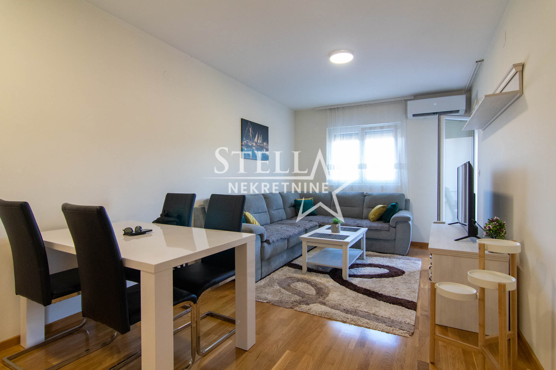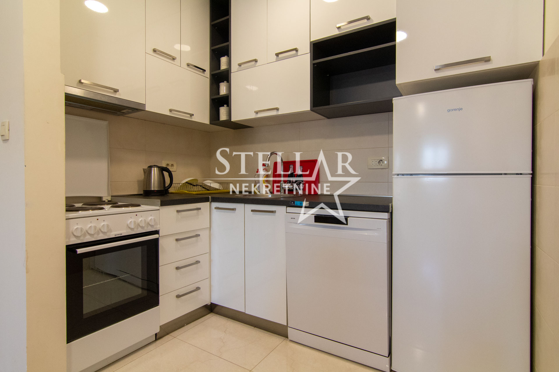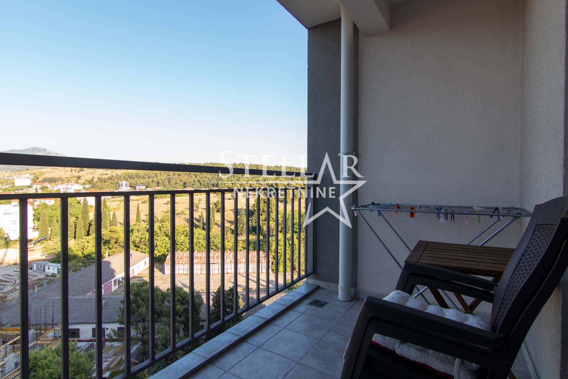 Izdaje se lijepo namješten jednosoban stan na 10. spratu novije zgrade na početku Zagoriča, zgrada Zetagradnje. Stan ima 44m2, opremljen je svim pokućanstvom neophodnim za život. U kuhinji je veliki frižider, mašina za suđe. Kupatilo je prostrano, ima mašinu za veš. Stan je istočne orijentacije sa balkonom koji komunicira sa dnevnom i spavaćom sobom. Klima je u dnevnoj sobi, mada može biti instalirana i dodatna jedinica u spavaćoj sobi.