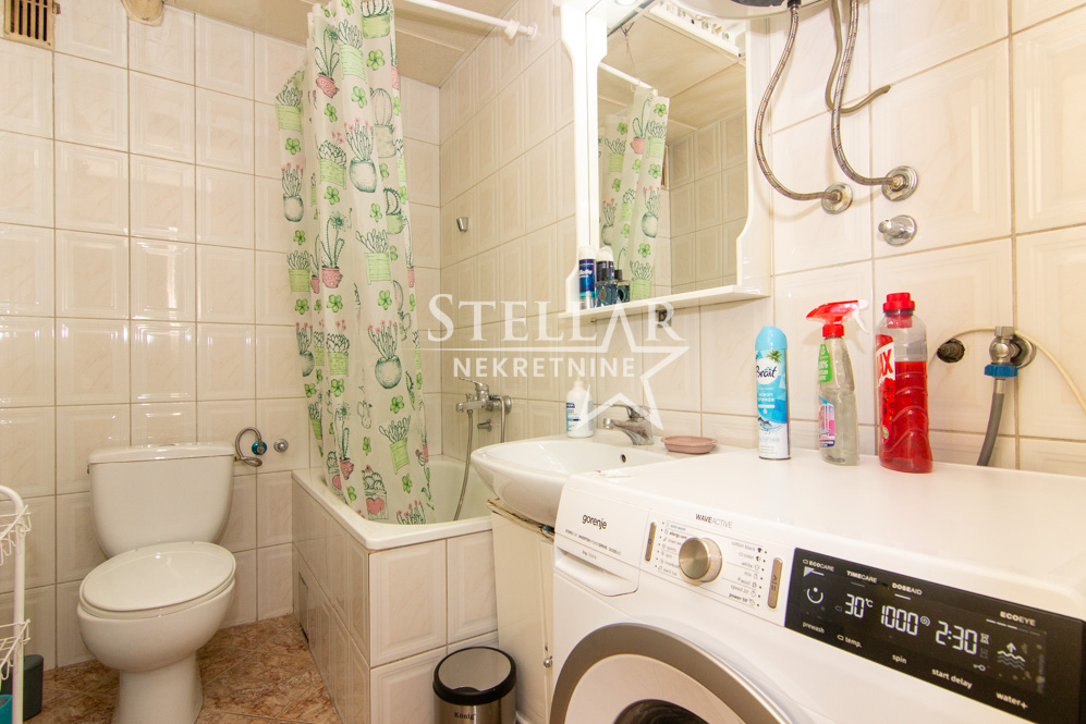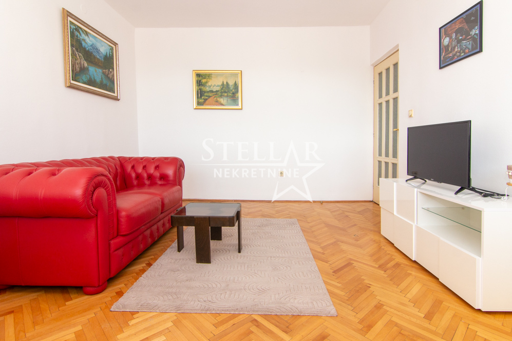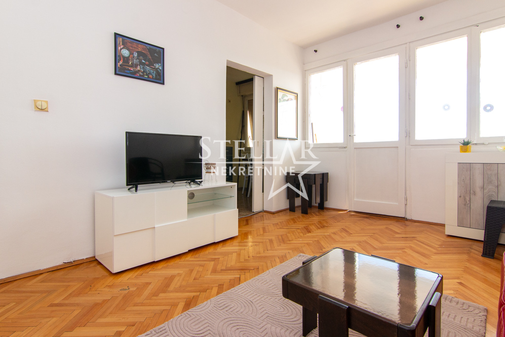 Izdaje se u potpunosti namješten jednosoban stan 46m2. Stan se nalazi na sedmom spratu u zgradi sa liftom. Orijentacija stana je južna, što ga čini veoma osunčanim. U dnevnom boravku se nalazi klima uredjaj, a od ostale tehnike posjeduje veš mašinu.
