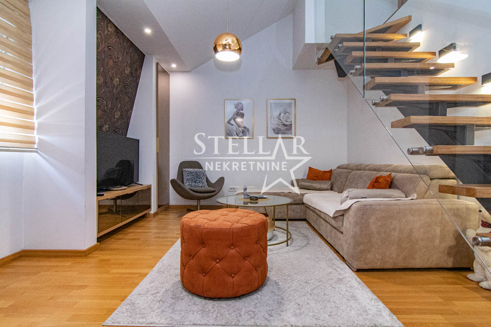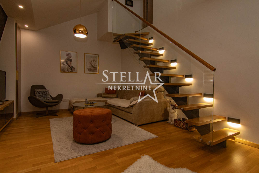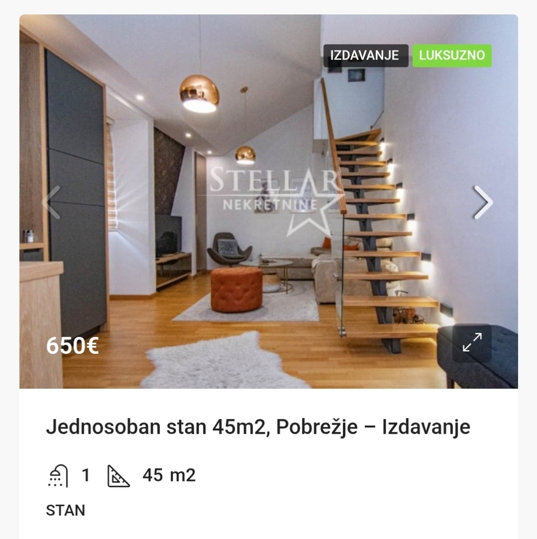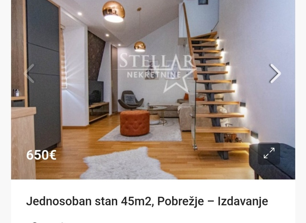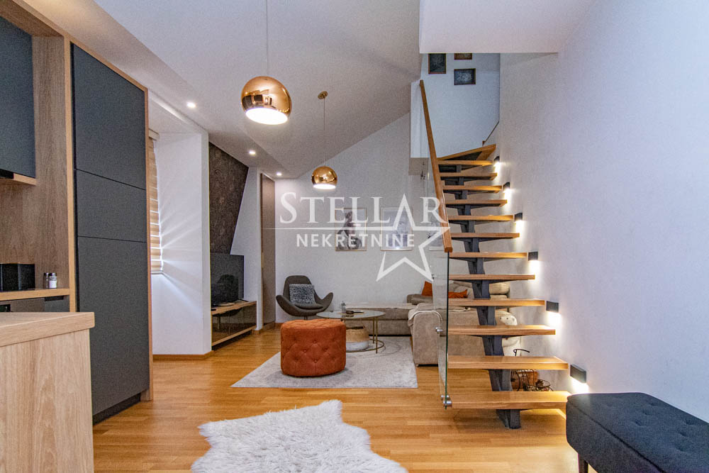Izdaje se prelijepo namješten duplex stan na 2. spratu manje zgrade u ulici Kralja Nikole. Stan je klimatizovan na oba nivoa. Na prvom nivou se nalaze kuhinja, dnevna, trpezarija i toalet. Gore su spavaća soba, kupatilo i ostava. Stan nema balkon i nema lift. Parking je iza zgrade, dostupan svima za korištenje i uvjek dostupno po neko parking mjesto. Prozori su zapadne orijentacije.