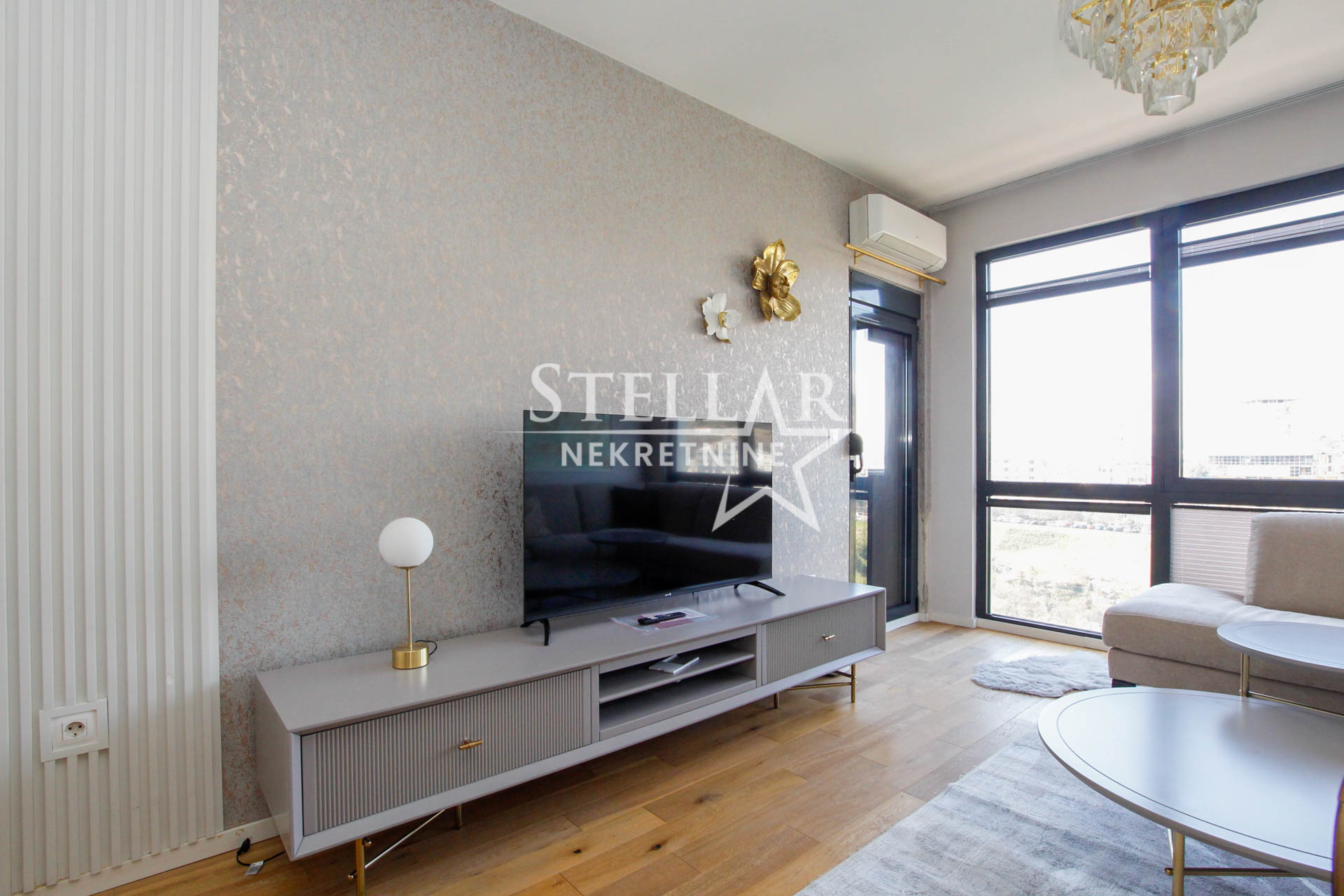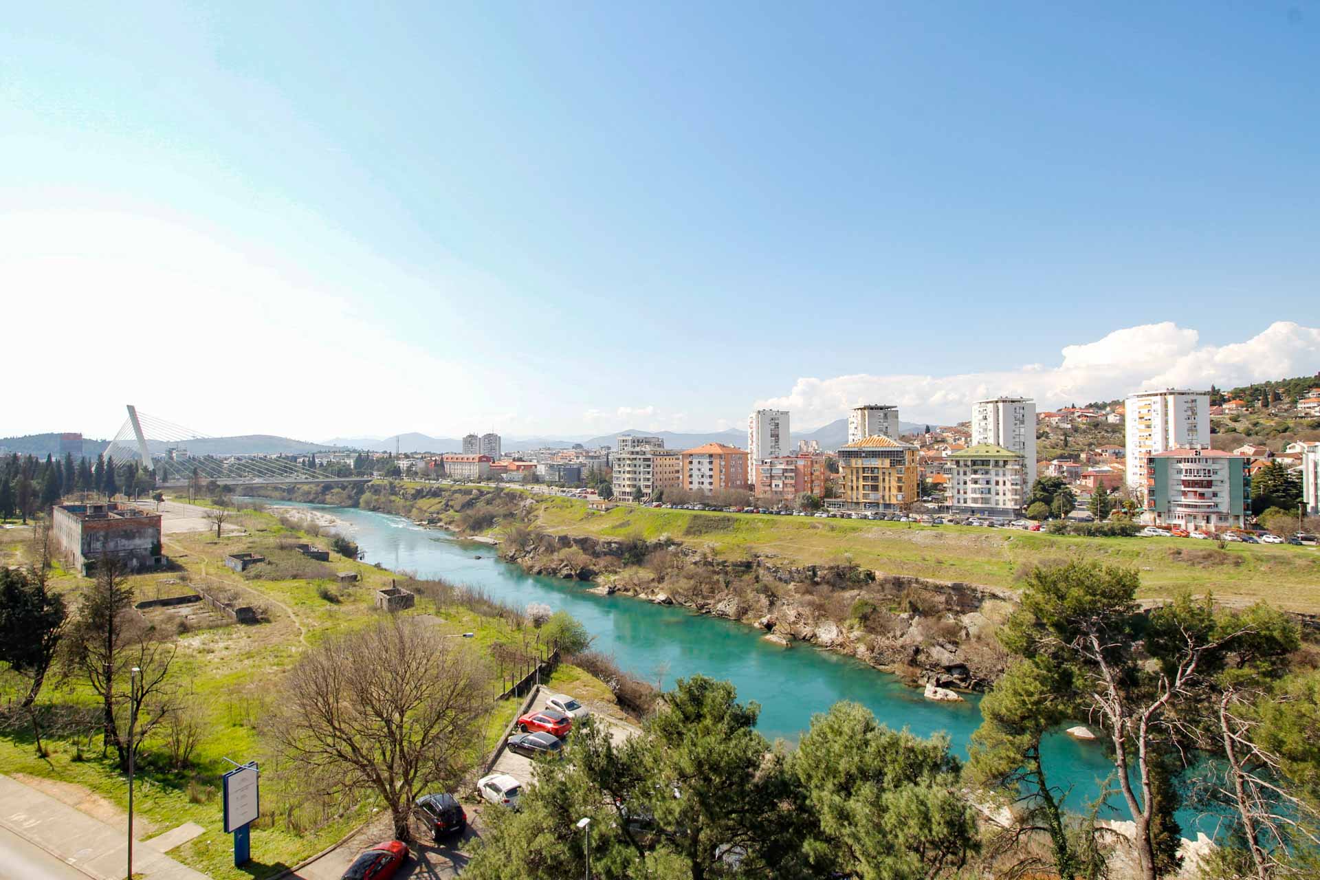 Stan se nalazi na petom spratu moderne stambene zgrade koja ima pogled na rijeku Moraču. Površina stana iznosi 47 m2.
