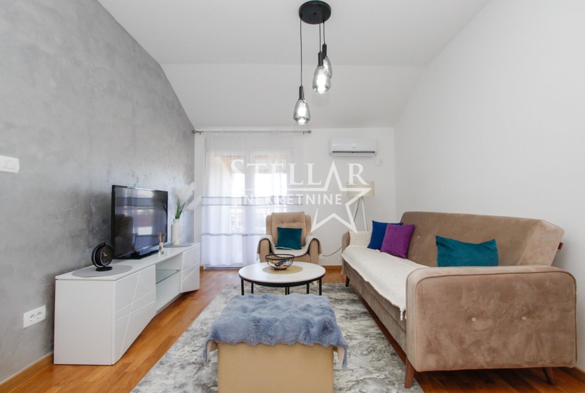 Stan se nalazi na trećem, ujedno i poslednjem spratu stambene zgrade i ima površinu od 47 m2. U potpunosti je opremljen novim i modernim namještajem i do sada nije useljavan.