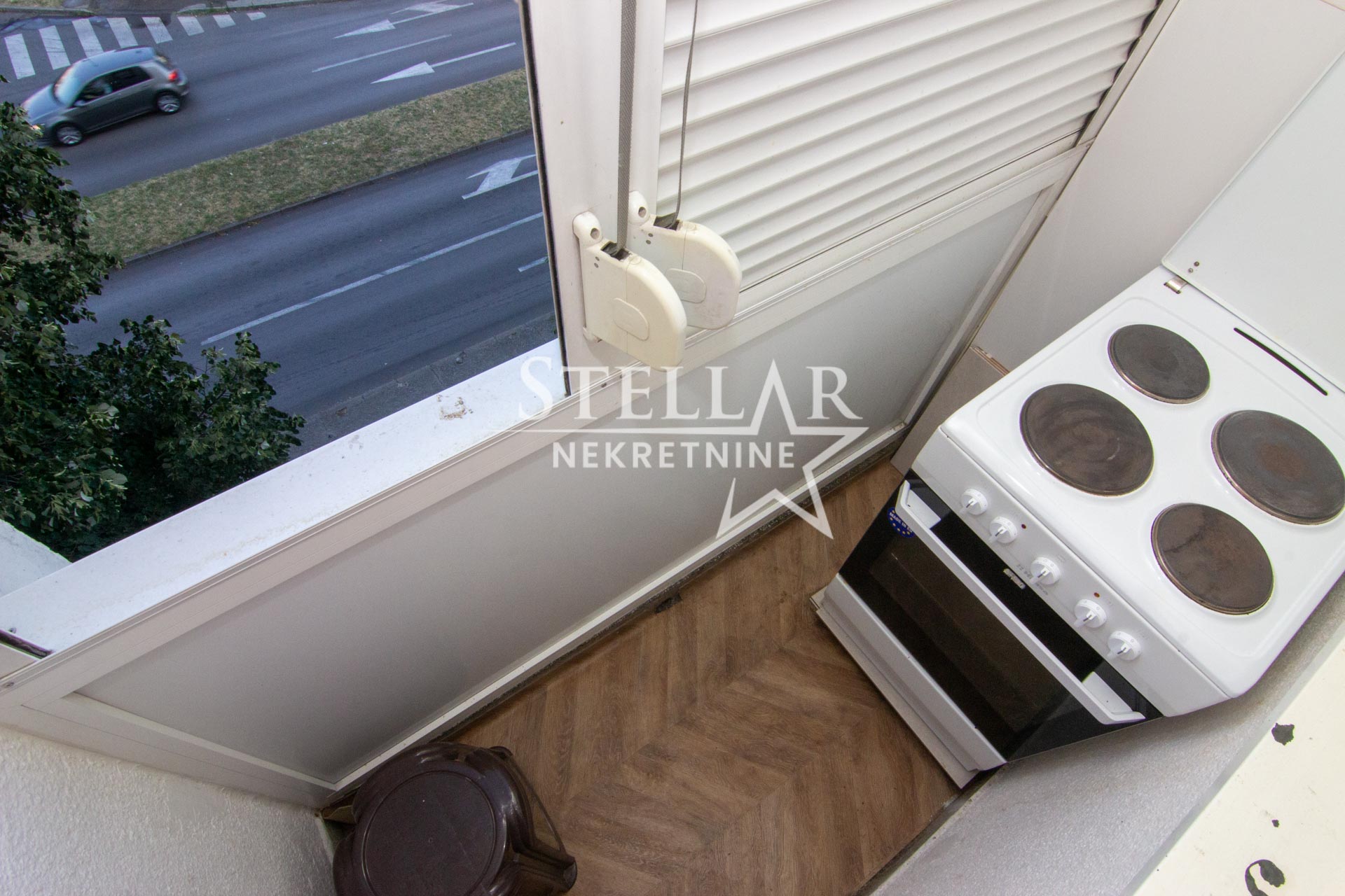 Stan se nalazi na odličnoj lokaciji jer se u blizini nalazi centar grada, dok se u okolini stana nalaze vrtić, škola, kafići, restorani, parkovi itd. Parking je javan i nalazi se svuda oko zgrade.