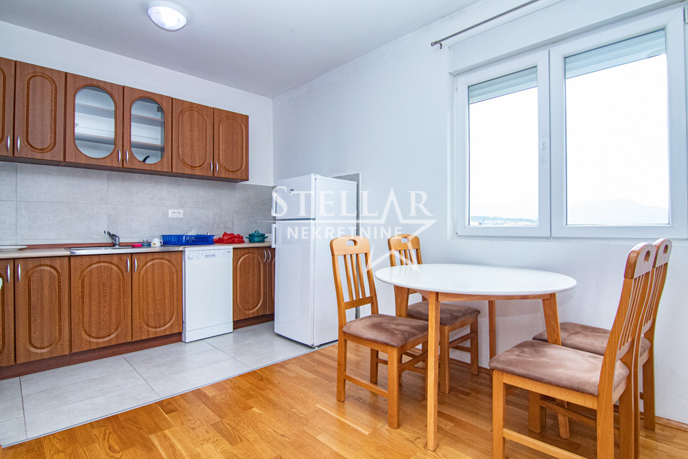 Izdaje se lijepo opremljen jednosoban stan na 7. spratu stambene zgrade preko puta OŠ Pavle Rovinski na Starom Aerodromu. Stan je u jako dobrom stanju, prostran i potpuno opremljen za život, samo je potrebno unijeti lične stvari. U kuhinji je veliki frižider, mašina za suđe. U kupatilu je mašina za veš.