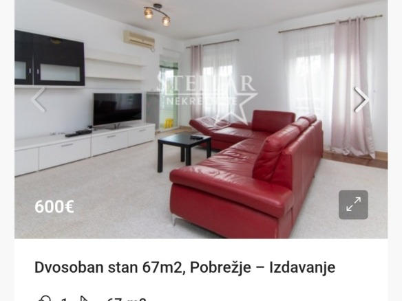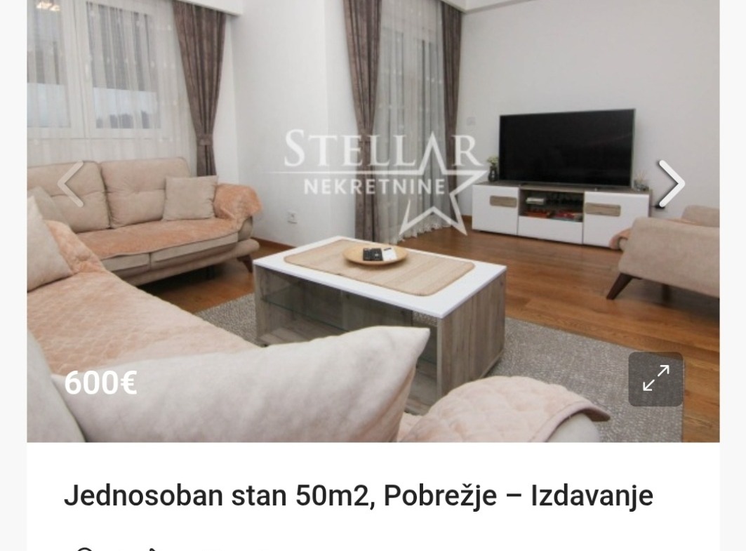 Jednosoban stan 50m2, Pobrežje – Izdavanje