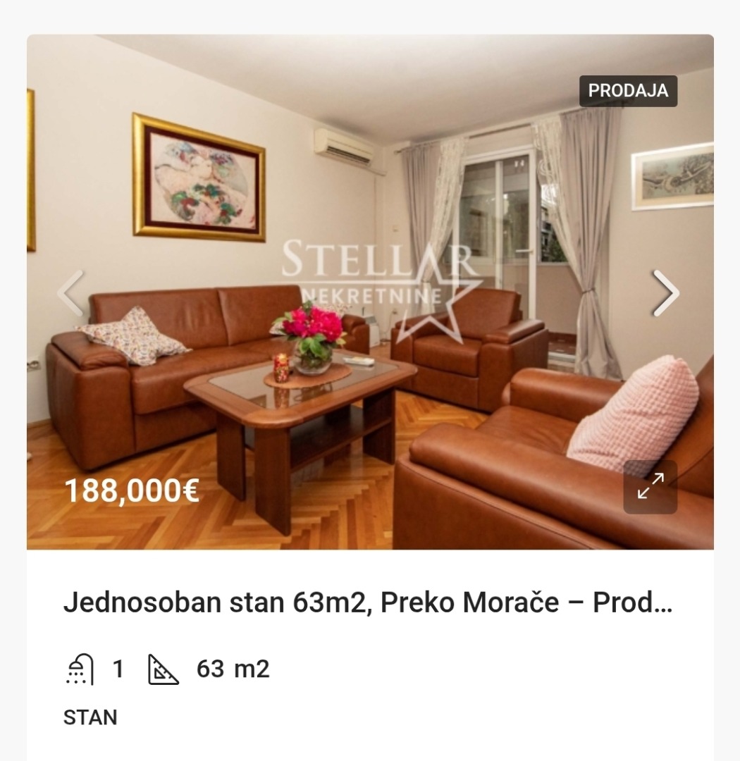 Jednosoban stan 63m2, Preko Morače – Prodaja