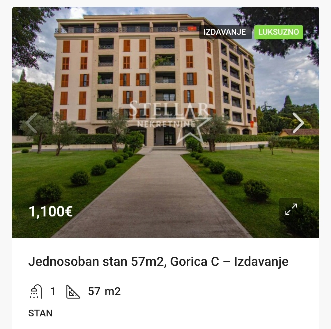 Lijepo opremljen jednosoban stan nalazi se u zgradi Volvoga u podnožju Brda Gorica. Balkon stana je 5m2, orijentisan je jugo-zapadno. Po jedan klima uređaj se nalaze u dnevnoj i spavaćoj sobi. Spavaća soba ima francuski balkon.