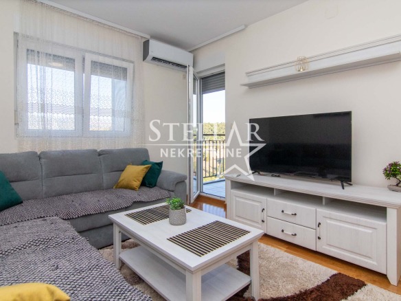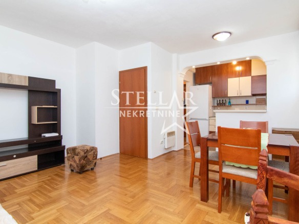 Izdaje se jednosoban stan na 2. spratu stambenog objekta, smešten u ulici Iva Andrića, kraj Zagorica. Stan poseduje ćošak zgrade i dva balkona koji su orijentisani ka severu i istoku. Površina većeg balkona je oko 25m2, dok je ukupna površina stana, bez balkona, 60m2.