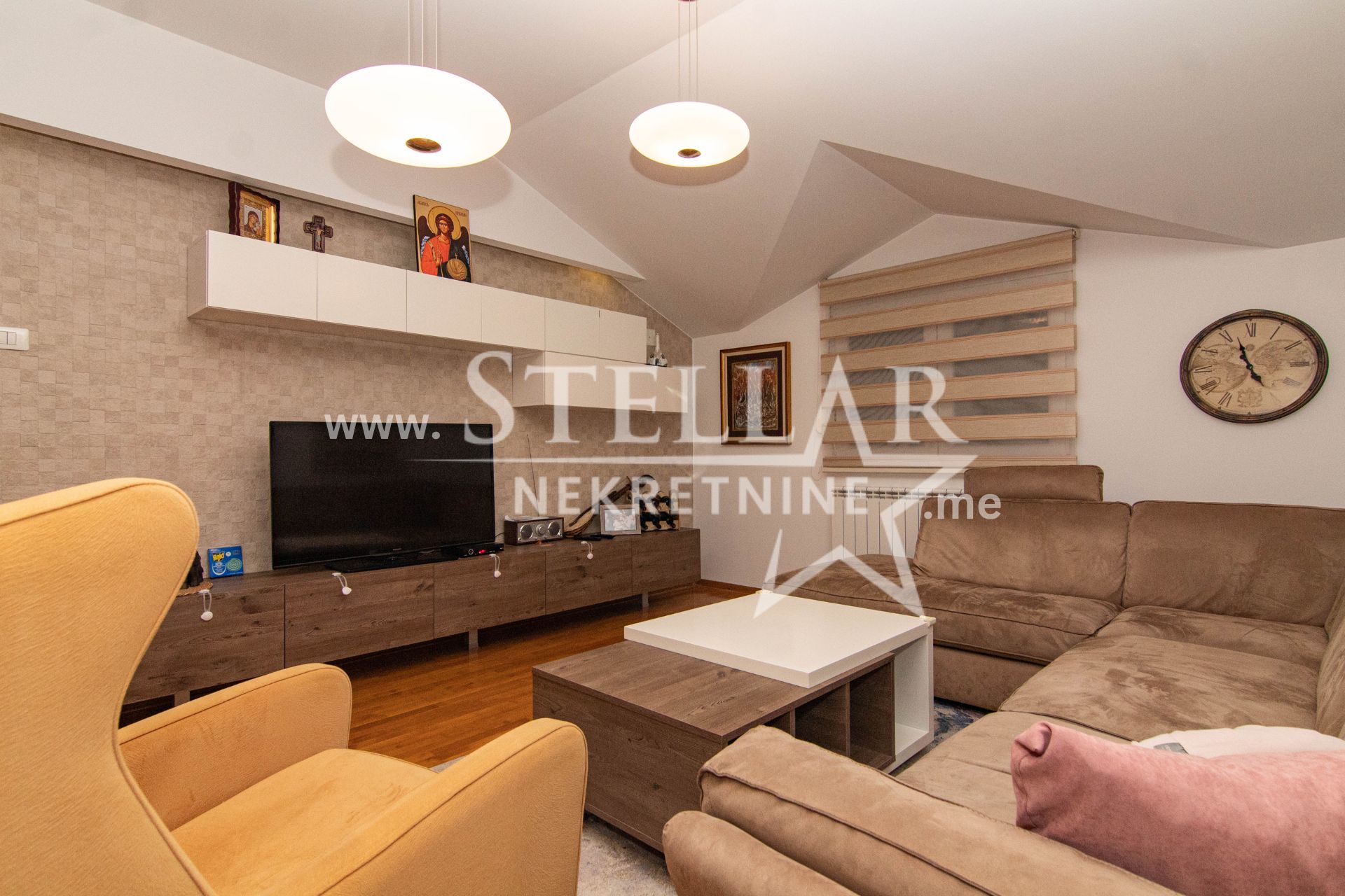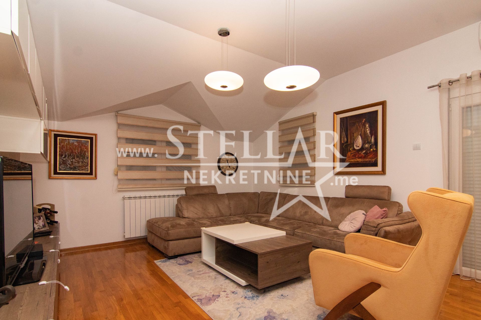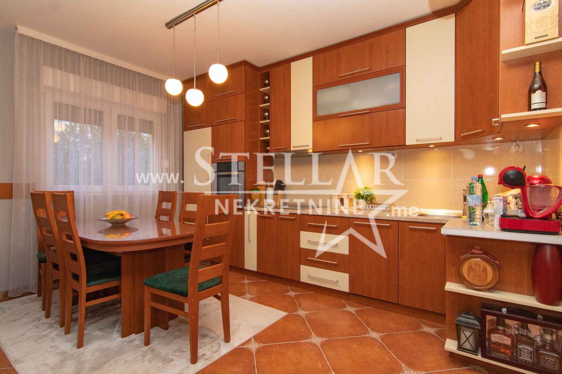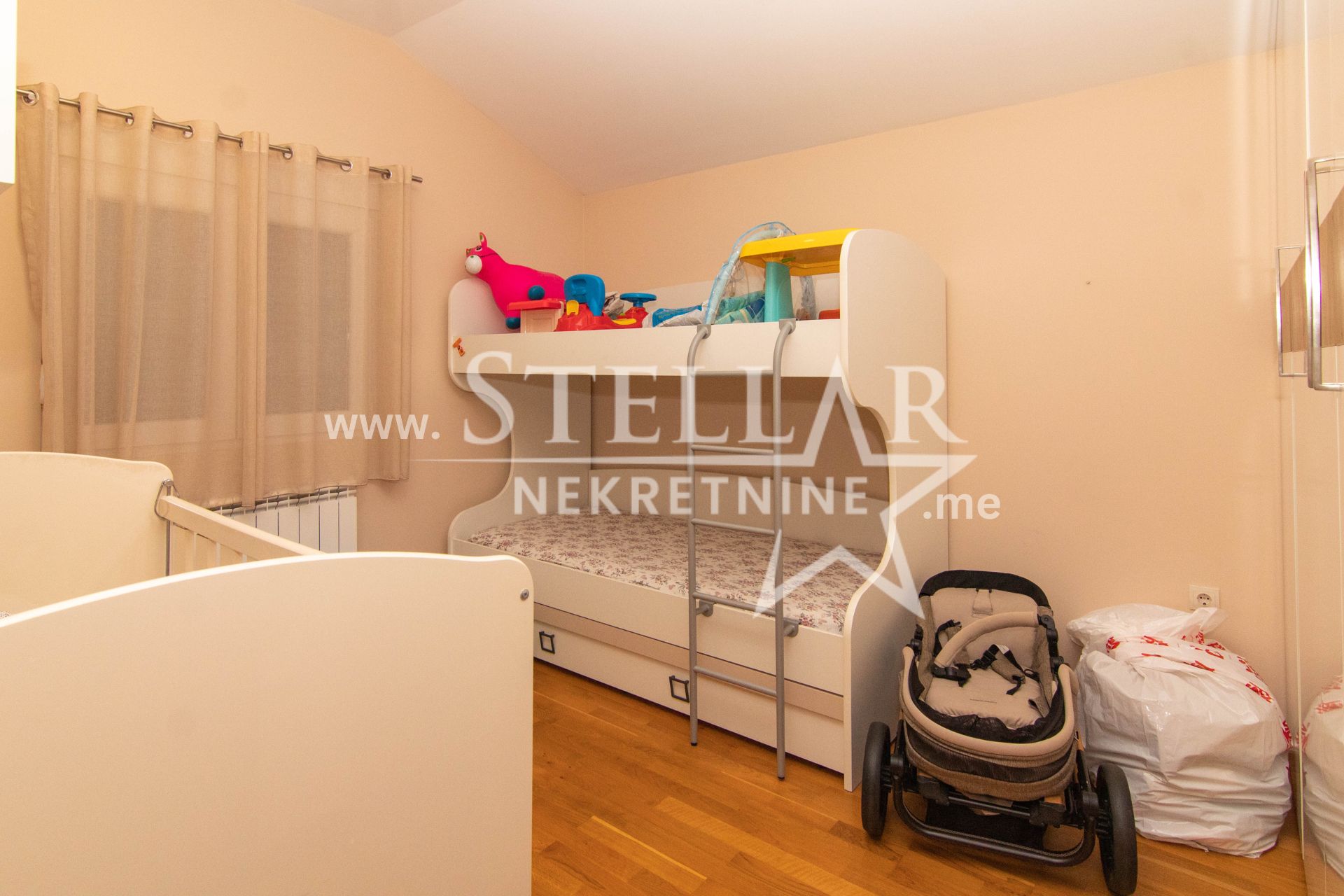 Na prizemlju je u dječijoj sobi jedan kauč na rasklapanje, na prizemlju su kreveti na sprat. Gornji sprat se grije na pelet i klimu, prizemlje na struju. Oba sprata imaju mašine za pranje i sušenje. U dvorištu ima dovoljno prostora za parking.