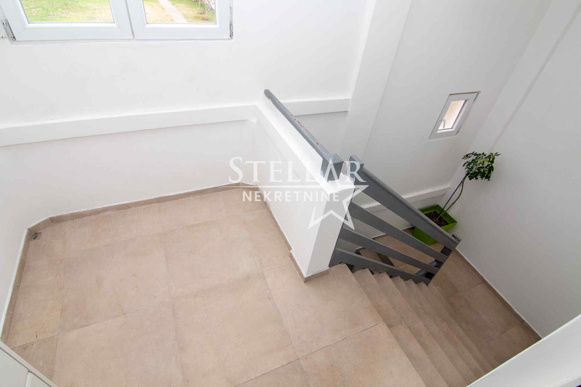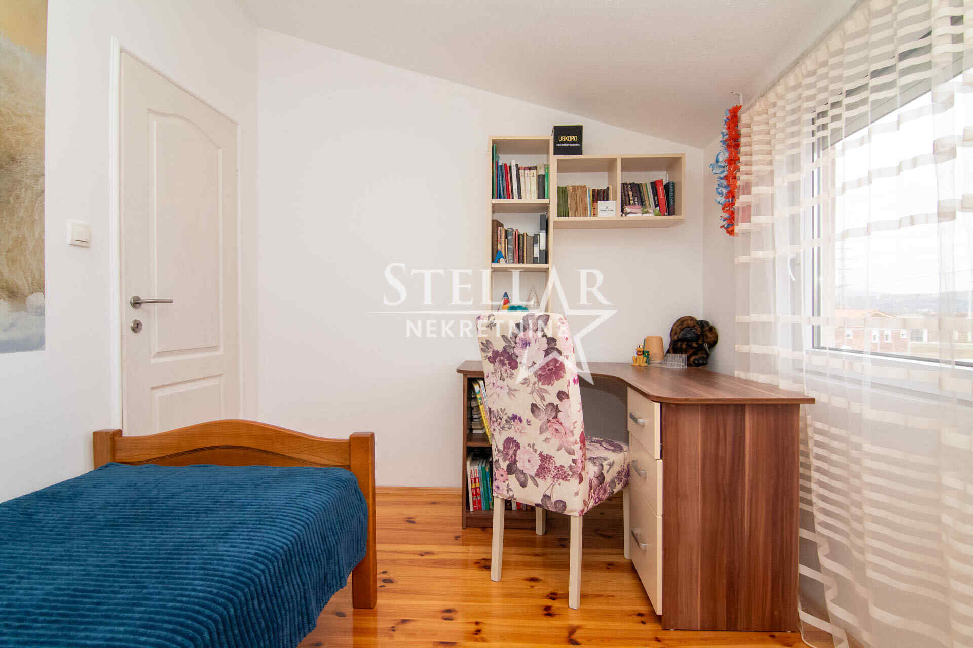Prvi sprat sadrži hodnik, kupatilo, dnevnu sobu, kuhinju, dvije spavaće sobe i prostranu natkrivenu terasu. U kuhinji se nalazi veliki frižider kao i mašina za suđe. Na drugom spratu nalaze se tri spavaće sobe, hodnik, veliko kupatilo i prostrana natkrivena terasa. Na drugom spratu je i dnevni boravak koji može služiti kao igraonica, čitaona, radna soba ili trpezarija. Svaka prostorija im dnevnu svjetlost kroz vrata ili prozore.