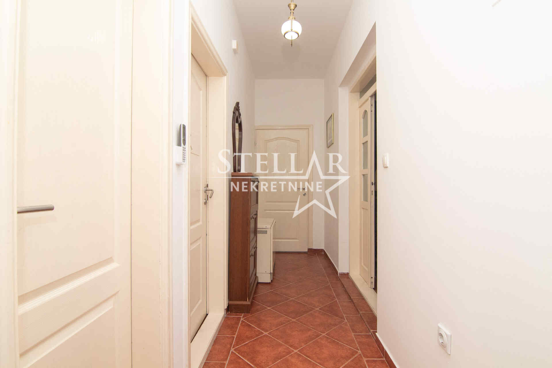 Dvorište površine 1400m2 ograđeno je sa svih strana zidom visokim oko 1.5m. U dvorištu je desetina voćaka koje su na raspolaganju stanarima. Unutar dvorišta je i natkriveni parking.
