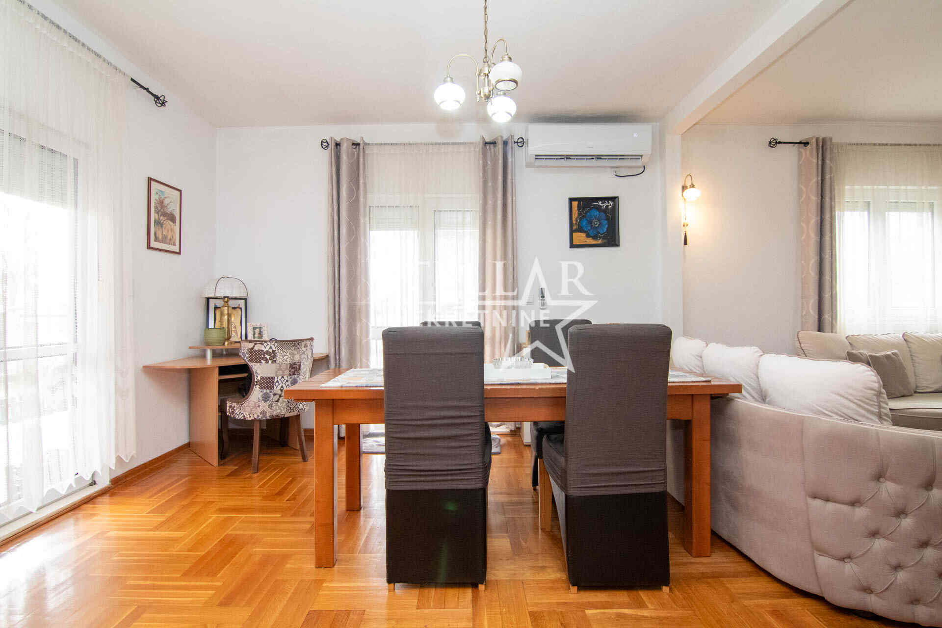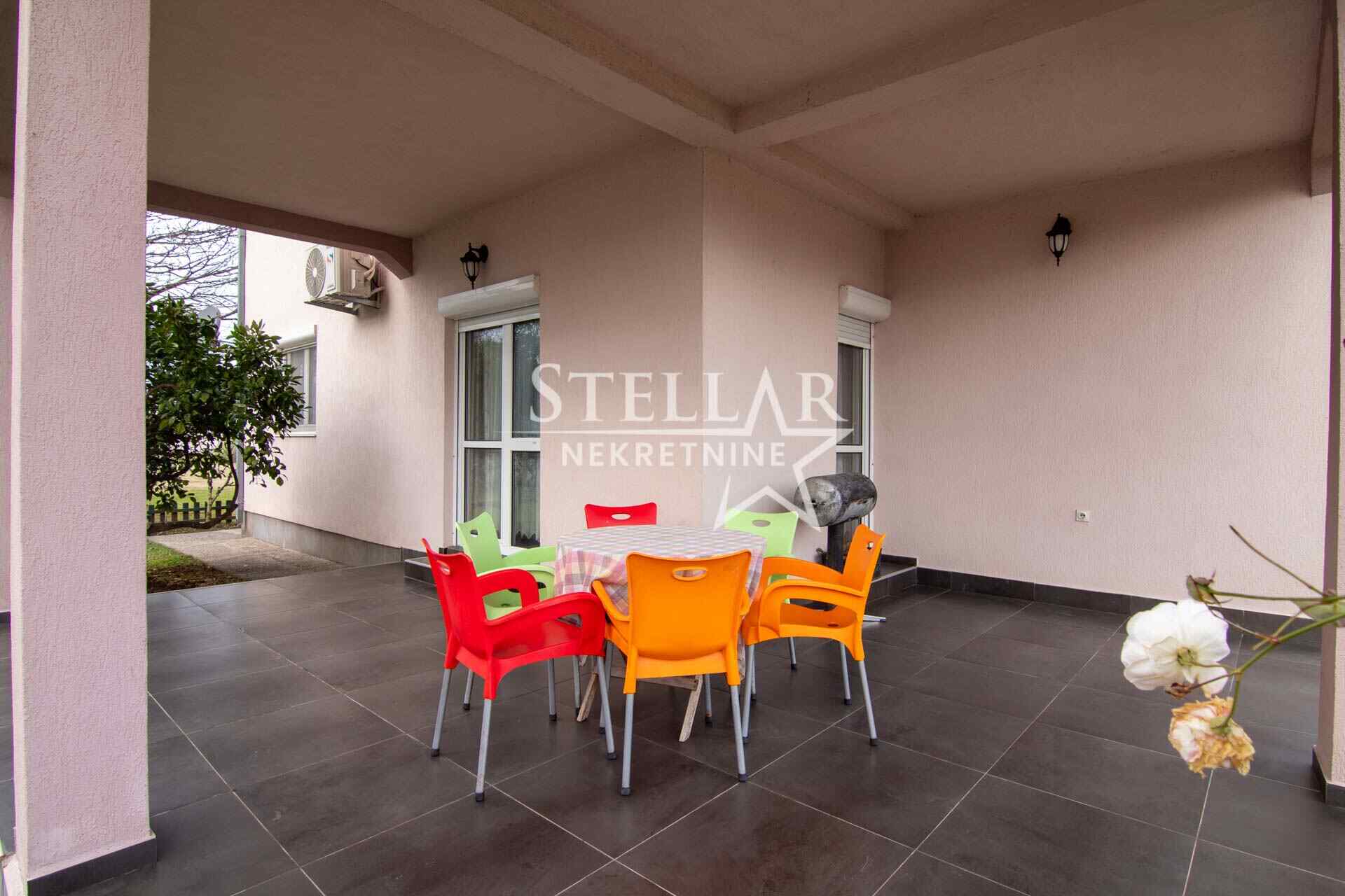 Kuća je opremljena toplotnim pumpama na oba sprata, koje pružaju efikasno grijanje i hlađenje, osiguravajući maksimalnu energetsku efikasnost i udobnost. Dodatne pogodnosti uključuju kapiju s daljinskim upravljanjem, ljetnju kuhinju sa zasebnim spoljnim ulazom, garažu, kao i solarni sistem koji značajno smanjuje troškove električne energije, omogućavajući račune za struju niže od 5 eura mjesečno. Sistem se sastoji od četiri unutrašnje jedinice, raspoređene po dvije na svakom spratu.