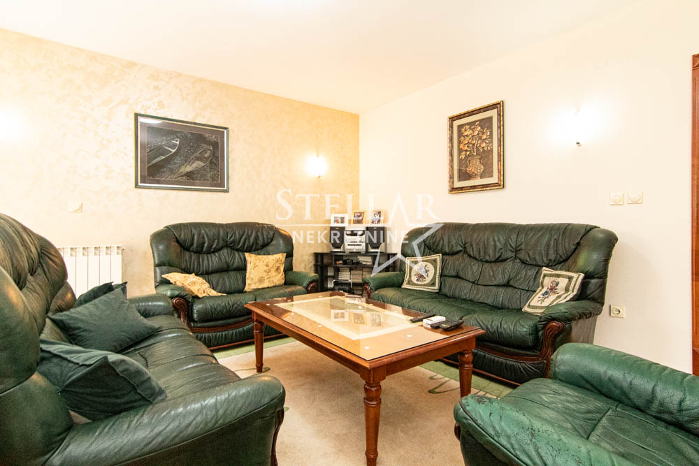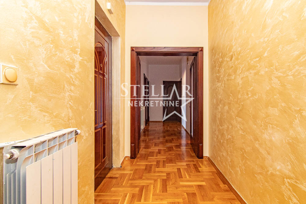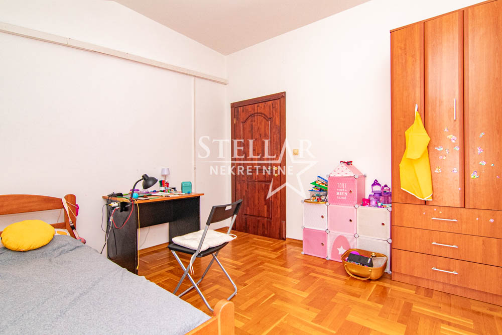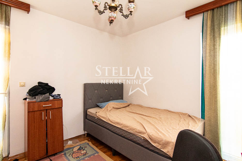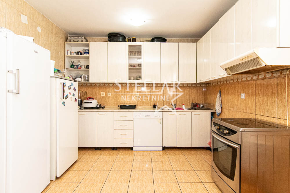 Na prodaju je trospratna kuća sa podrumom, smještena na odličnoj lokaciji u naselju Stari Aerodrom. Izgrađena 2000. godine, kuća obuhvata prizemlje, dva sprata i podrum. Prizemlje trenutno funkcioniše kao poslovni prostor, dok je podrum u upotrebi kao magacin. Na prvom i drugom spratu nalaze se prostrani četvorosobni stanovi. Površina svih etaža je po 150m² (spoljni gabarit 16.5m x 9.5m), bez uključivanja balkona i terasa.