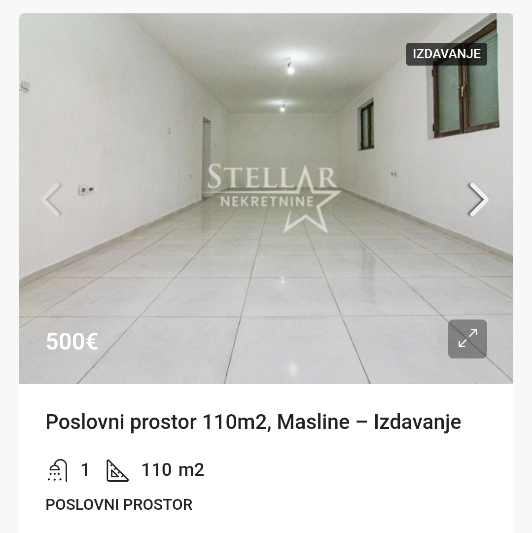 Prostor se izdaje na duži vremenski period uz obavezan depozit.