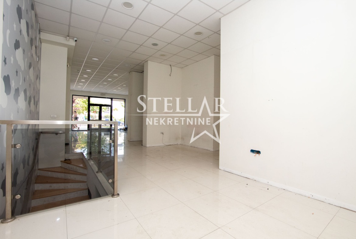 Izdaje se poslovni prostor u Siti kvartu. Prostor je prodajni objekat sa izložbenim dijelom i suterenom. Na prizemlju je 82m2, a u suterenu 80m2. Pogodan je za butik, prodavnicu ili nesto treće. Izlazi na Cetinjski put, pa na udaru mnogih pogleda.