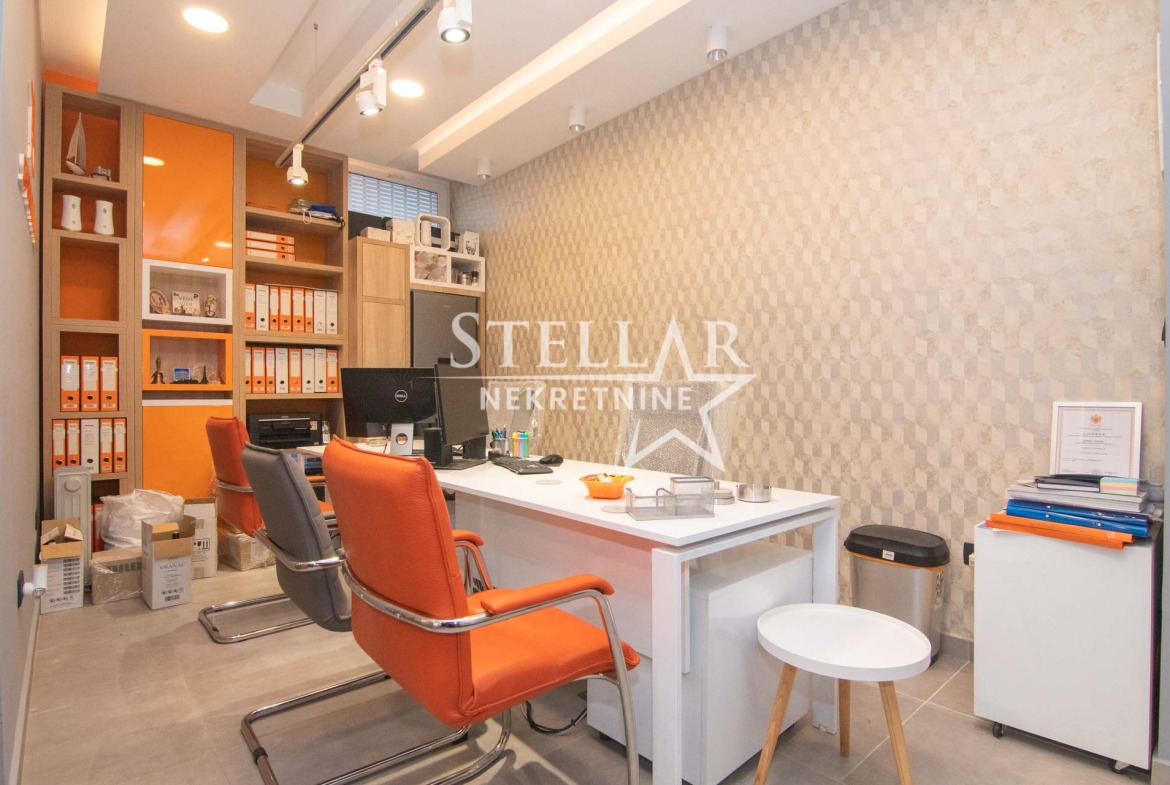 Prodaje se poslovni prostor površine 35m2. Prostor se prodaje opremljen, a ranije je služio kao kancelarija za dvije agencije, turističku i agenciju za nekretnine. Kancelarije su potpuno opremljene kompjuterima, policama i fasciklama, televizorom za prezentacije. U ovom kompaktnom prostoru se nalazi i lobi stolice, ornamenti, a uglu je jedan toalet.