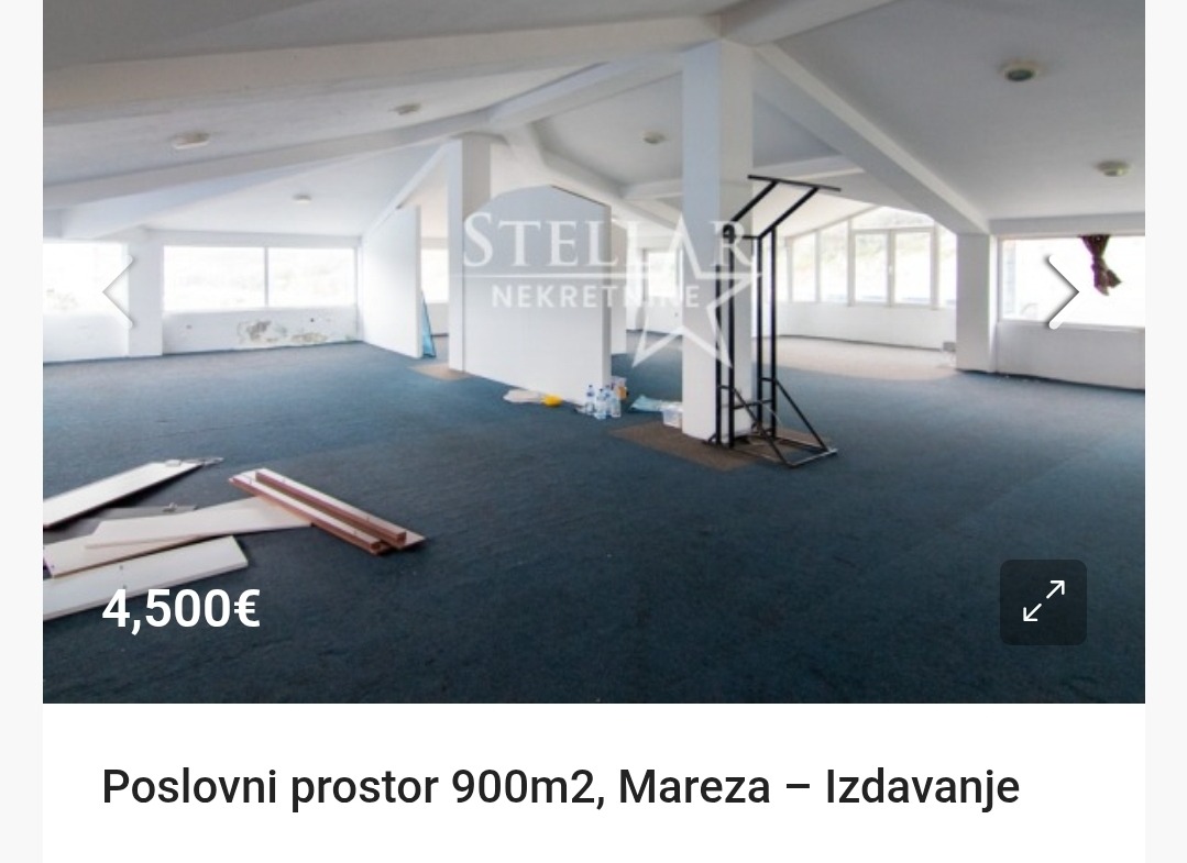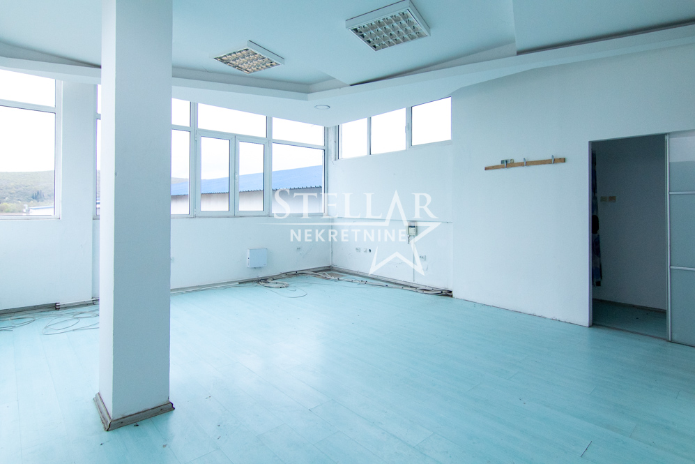 Izdaje se trospratni poslovni objekat izgrađen 2002. godine, ukupne površine 900 m², po 300 m² po spratu. Prizemlje čini jedna velika prostorija i dvije manje kabine. Na srednjem spratu se nalazi šest prostorija pregrađenih gipsanim zidovima, dok su na 2. spratu pregrađene 2-3 prostorije, takođe gips. Objekat ima četiri mokra čvora i jedno kupatilo. Ispred objekta se nalazi dvorište površine oko 400 m². Smješten je na frekventnoj lokaciji uz magistralni bulevar Podgorica–Danilovgrad. Prostor je funkcionalan i očuvan.