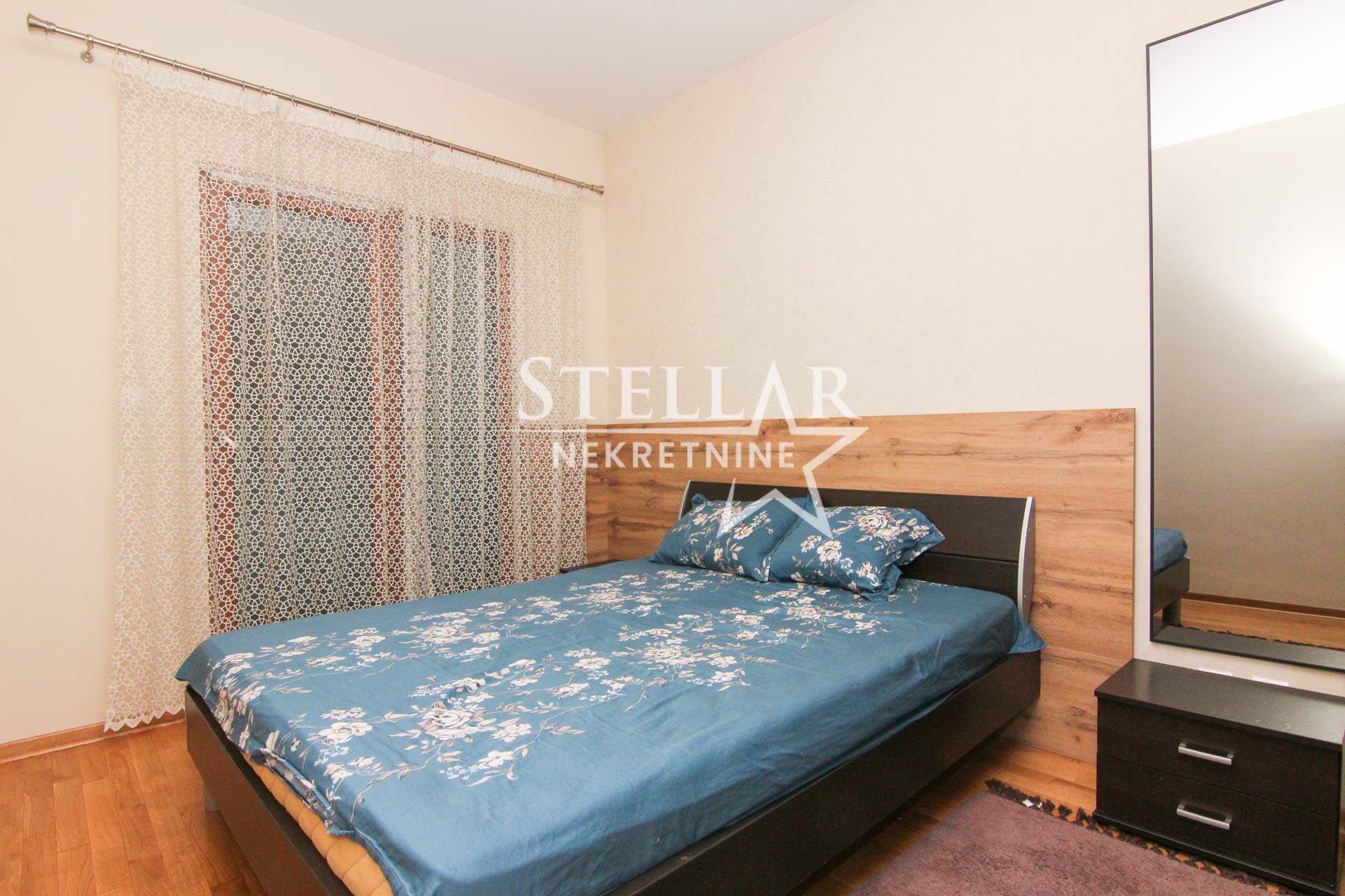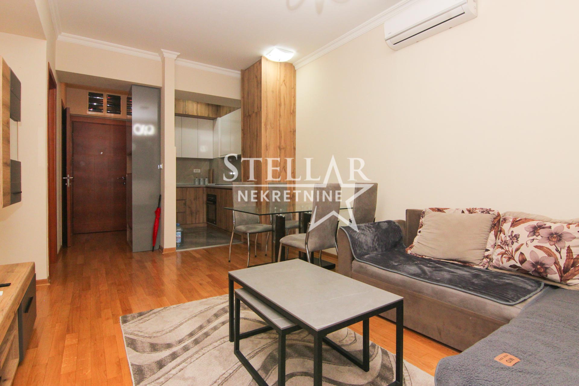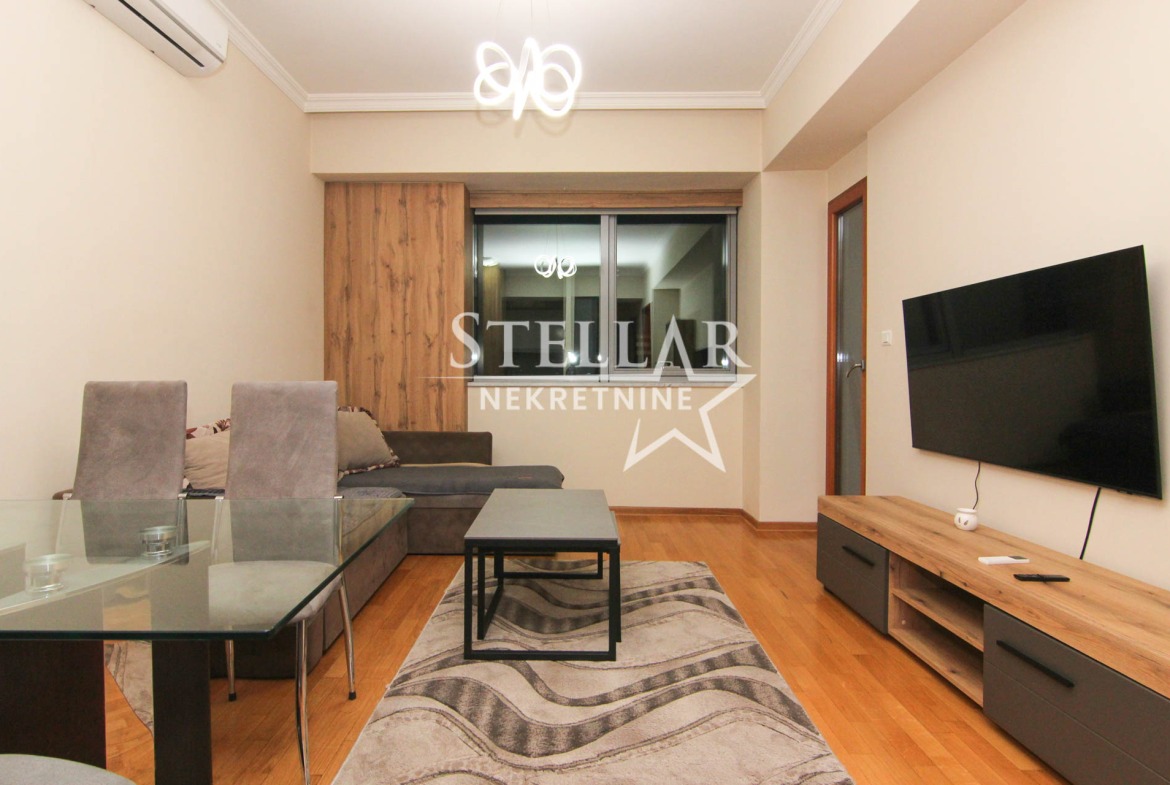 Izdaje se u potpunosti namješten jednosoban stan 41m2. Stan se nalazi na trećem spratu u zgradi sa liftom. Orijentacija strana je južna. U dnevnom boravku se nalazi klima uredjaj, a od ostale tehnike posjeduje veš mašinu i mašinu za suđe.