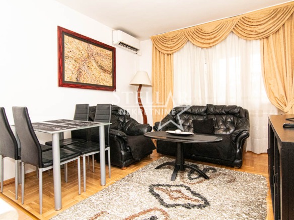 Izdaje se lijepo opremljen stan na drugom spratu prvog solitera kod Mall of Montenegro. Površina stana je 55m² ne računajući balkone. Stan je nedavno potpuno renoviran i opremljen najsavremenijim namještajem i pokućanstvom. Ima dva balkona. Jedan balkon je povezan sa dnevnom sobom, a drugi sa dvije spavaće sobe. Stan ima veliki frižider, mašinu za veš, mašinu za suđe. Dnevna svjetlost dopire do cijelog stana, a tu je i led rasvjeta.